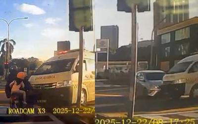 Ambulans PBSM bertembung Myvi di lampu isyarat, rempuh pula empat penunggang motosikal