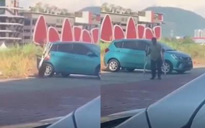 [V] Nampak sihat sempurna... Peminta sedekah didakwa kencing belakang Myvi kantoi ‘steady’ berjalan pegang tongkat