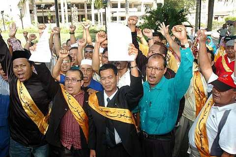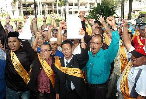SEBAHAGIAN daripada anggota Gabungan Graduan Melayu Muda (GGMM) bersama peguam mereka, Sahrihan Jani (tiga, kiri) berkumpul selepas memfailkan saman terhadap kerajaan negeri berhubung kelulusan peggunaan papan tanda dalam pelbagai bahasa di tapak warisan Georgetown. Seramai 200 anggota kumpulan itu berkumpul di Padang Kota Lama sebelum berarak menuju ke Mahkamah Tinggi Pulau Pinang. --fotoBERNAMA PULAU PINANG: Gabungan Graduan Melayu Muda (GGMM) memfailkan saman di Mahkamah Tinggi di sini semalam terhadap kerajaan Pulau Pinang berhubung penggunaan papan tanda nama jalan dalam pelbagai bahasa di tapak warisan Georgetown.Dalam writ saman yang difailkan pada 2.55 petang, gabungan itu memohon mahkamah mengeluarkan perintah menghalang papan tanda itu dinaikkan. Gabungan itu turut memohon satu deklarasi dibuat berhubung Perkara 152 Perlembagaan Persekutuan bagi mempertahankan Bahasa Melayu sebagai Bahasa Kebangsaan.Writ saman telah difailkan oleh wakil gabungan itu Nik Rizman Sapian menerusi peguam Sahrihan Jani dari Tetuan Sahrihan & Hamdan, dengan menamakan Majlis Perbandaran Pulau Pinang (MPPP) sebagai defendan pertama dan kerajaan negeri Pulau Pinang sebagai defendan kedua.Dalam penyata tuntutan, Nik Rizman yang juga anggota GGMM, menyatakan bahawa beliau telah menghantar notis tuntutan kepada keduadua defendan supaya membatalkan keputusan memasang papan tanda nama jalan dalam pelbagai bahasa di tapak warisan Georgetown.Kedua-dua defendan telah mengabaikan notis yang dihantar melalui Tetuan Azam Aziz dan Rose Maria menyebabkan beliau memohon satu deklarasi dan injunksi dari mahkamah.Ketika ditemui pemberita di luar pekarangan mahkamah, Pengerusi GGMM Khairul Azam Abdul Aziz berkata, perjuangan gabungan itu bertujuan mempertahankan ketuanan Melayu yang kian tercabar."Perjuangan kami berdasarkan peruntukan undangundang dan bukan berdasarkan emosi sematamata, kalah menang itu adat, yang penting kami berjuang mempertahankan kedaulatan Melayu," katanya.Terdahulu 200 anggota gabungan itu mengadakan perarakan secara aman dari Padang Kota Lama menuju ke perkarangan Mahkamah Tinggi tidak jauh dari situ. BERNAMA