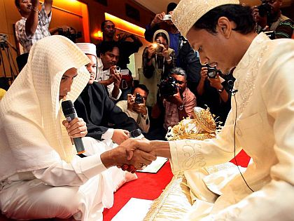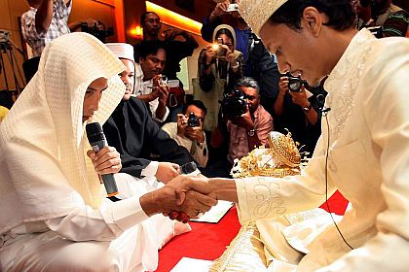 Zaidy dinikahkan oleh bapa Nabila sendiri, rocker terkenal Amy Search di Masjid Wilayah Persekutuan Jalan Duta, pagi tadi - foto THE STAR oleh IBRAHIM MOHTAR