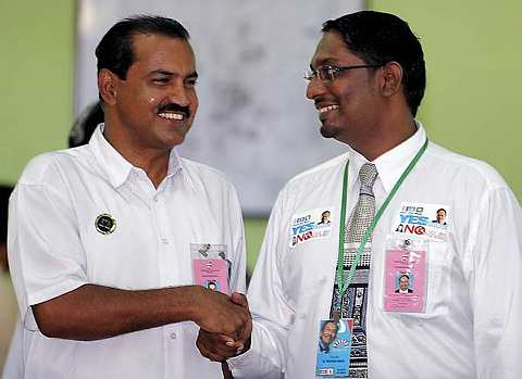 CALON BN dan PKR..Datuk S.Ganesan dan calon PKR S.Manikumar akan berhadapan dengan saingan 13 calon Bebas yang turut bertanding di DUN Bukit Selambau.