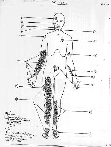 Laporan autopsi dari Jabatan Perubatan Forensik, Hospital Tengku Ampuan Rahimah, Klang, yang disediakan oleh pakar perunding kanan perubatan forensik Dr Khairul Azman Ibrahim, mendedahkan mangsa mengalami beberapa kecederaan termasuk bahagian luka yang besar di bahagian depan peha kanan, lutut kanan dan dagu kanan.