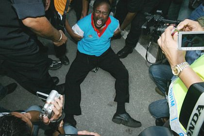 Beliau dikatakan telah mencetuskan kekecohan apabila mengingkari arahan polis supaya tidak menggunakan alat pembesar suara untuk melaungkan kata-kata berunsur provokasi.