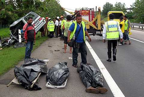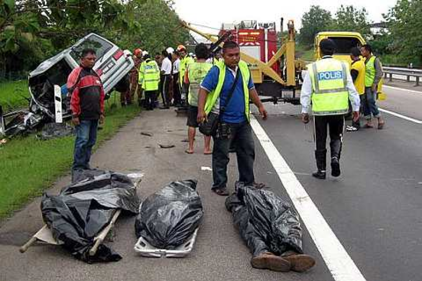 KEMALANGAN MAUT... Tiga daripada lapan beranak mati ditempat kejadian selepas van yang mereka naiki terbabas dan melanggar sebatang pokok di KM 103.8 Lebuh Raya Butterworth-Sungai Petani berhampiran Taman Sejati di sini, hari ini. --fotoBERNAMA