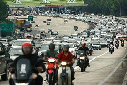Deretan kenderaan memenuhi Plaza Tol Jalan Duta di Kuala Lumpur semalam apabila warga kota mula pulang ke kampung sempena cuti Tahun Baru Cina. Foto The Star Oleh Azman Ghani