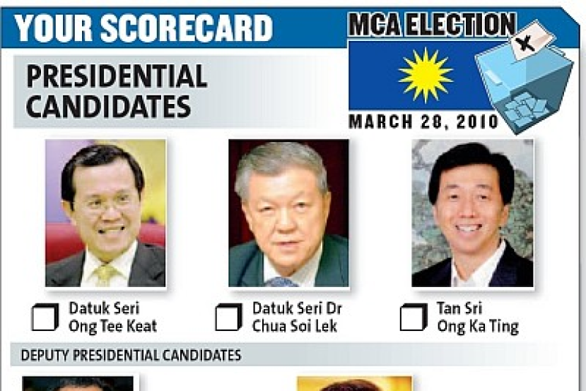 Pemilihan bagi jawatan presiden menyaksikan pertandingan tiga penjuru antara penyandang jawatan Datuk Seri Ong Tee Keat, bekas timbalan beliau Datuk Seri Dr Chua Soi Lek dan bekas presiden Tan Sri Ong Ka Ting.