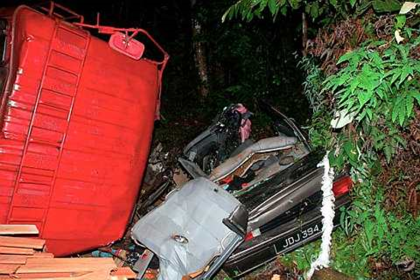 HANCUR ... Keadaan kereta yang terperosok di bawah treler selepas terlibat dalam kemalangan maut di KM78 Jalan Kuantan-Segamat dekat Pekan pada 8.45 malam tadi, ketika tinjauan fotoBernama dekat sini, awal pagi tadi. Kereta proton Iswara yang dipandu oleh Norfaizah Mansor, 31, bersama empat anaknya Norsyahira Atika Saudi, 13, Norsufia Saudi, 10, Norsuhaila Saudi, 7, dan Mohd Shahrul Amir Saudi, 3, serta adik Norfaizah, Mohd Saiful Anwar Mansor, 14, cuba memotong sebuah kenderaan di hadapannya namun gagal dan bertembung dengan sebuah treler menyebabkan kesemua mati di tempat kejadian. -Foto BERNAMA. PEKAN: Enam sekeluarga terbunuh apabila kereta yang mereka naiki bertembung dengan sebuah treler di KM78 Jalan Kuantan-Segamat dekat Pekan pada 8.45 malam tadi.Mereka dikenali Norfaizah Mansor, 31, dan empat anaknya Norsyahira Atika Saudi, 13, Norsufia Saudi, 10, Norsuhaila Saudi, tujuh, dan Mohd Shahrul Amir Saudi, tiga, serta adik Norfaizah, Mohd Saiful Anwar Mansor, 14. Timbalan Ketua Polis Daerah Pekan DSP Amran Sidek berkata ketika kejadian, kesemua mangsa yang menaiki kereta Proton Iswara yang dipandu Norfaizah, dalam perjalanan pulang ke Pekan dari rumah ibu bapanya di Keratong 2, Rompin."Sampai di tempat kejadian yang berhampiran dengan Kampung Runchang, kenderaan yang dinaiki mangsa dari arah Segamat cuba memotong sebuah kenderaan di hadapannya namun gagal dan bertembung dengan sebuah treler," katanya kepada pemberita di sini hari ini.Amran berkata kereta yang dipandu Norfaizah itu terperosok ke bahagian bawah treler berkenaan.Beliau berkata kesemua mereka meninggal dunia di tempat kejadian akibat kecederaan di bahagian kepala dan dada manakala pemandu treler yang berusia 44 tahun serta isterinya berusia 43 tahun cedera ringan di kaki.Ayah Norfaizah, Mansor Hamid, 55, berkata kebiasaannya, cucu beliau yang paling kecil, Mohd Shahrul Amir, jarang ikut ibunya balik ke Pekan."Tetapi hari ini semua nak ikut balik," katanya yang mengetahui kemalangan itu pada 11 malam sebelum terus bergegas ke tempat kejadian.Beliau berkata anaknya sekeluarga berangkat pulang ke Pekan sekitar 7 malam tadi kerana Norfaizah, yang merupakan Ketua Pusat Amanah Iktiar Malaysia (AIM) kawasan Tanah Putih, terpaksa pulang ke rumahnya bagi membuat persiapan menghadiri satu mesyuarat AIM hari ini.Ibu Norfaizah, Arfah Sulung, 54, pula berkata, anaknya itu pulang kerana mahu menemui suaminya yang jarang ditemui kerana bekerja di Bukit Ibam, Muadzam Shah."Menantu saya juga berhasrat untuk membawa arwah sekeluarga pergi bercuti di Melaka sempena cuti sekolah ini," katanya. -BERNAMA