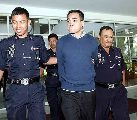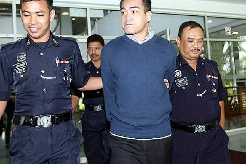 Mohd Fazli Azri (tengah) dibawa ke lokap mahkamah selepas tamat prosiding. Foto: THE STAR/IBRAHIM MOHTAR
