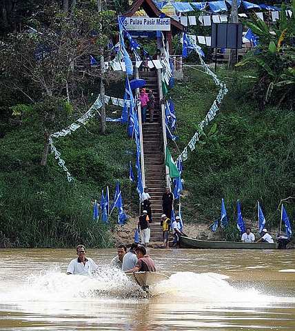 KHIDMAT... Pekerja parti yang bertanding membawa keluar pengundi dari Kampung Pulau Pasir Mandi menggunakan bot untuk mengundi di Sekolah Kebangsaan Pulai Pasir Mandi ketika tinjauan foto BERNAMA sempena Pilihan Raya Kecil Dewan Undangan Negeri (DUN) Kerdau di Temerloh, Ahad.BERIKUT merupakan kronologi proses pengundian bagi pilihan raya kecil Dewan Undangan Negeri (DUN) Kerdau yang mula berlangsung pada jam 8 pagi Ahad dan akan berakhir pada jam 5 petang:7.40 petang: Selepas 17 peti undi, BN memperoleh 3, 746 undi dan PAs mendapat 1,612 undi. Majoriti 2, 134 undi. Peti belum diterima 6. 7.25 petang: Selepas 11 peti undi diterima, BN mendapat 2,170 undi dan PAS mendapat 984 undi. 12 peti undi masih belum diterima.6.25 petang: Keputusan tidak rasmi: (Lipat Kajang) BN 243 undi. PAS 99 undi. Rosak 4. Majoriti 140 undi.(Desa Murni) BN 698 undi. PAS 377 undi. Rosak 10. Majoriti 321.(Kuala Tekal) BN 241 undi. PAS 64 undi. Rosak 5. Majoriti 177 undi.5.00 petang: Proses pengundian bagi pilihan raya kecil DUN Kerdau ditutup. 4.20 petang: Sehingga pukul 4 petang, peratusan keluar mengundi ialah 81.52 peratus atau 7,336 orang pengundi. 3.30 petang: Sehingga pukul 3 petang, seramai 7,149 orang pengundi atau 79.44 peratus sudah menunaikan tanggungjawab sebagai pengundi. 2.30 petang: Sehingga pukul 2 petang, SPR mengumumkan peratusan keluar mengundi ialah 75.62 peratus atau 6,805 orang pengundi. 1.26 petang: SPR mengumumkan jumlah keluar mengundi sehingga pukul 1 tengah hari ialah 6,467 orang atau 71.86 peratus. 12.30 tengah hari: Sehingga pukul 12 tengah hari, seramai 5,874 pengundi atau 65.27 peratus telah keluar mengundi. 11.25 pagi: SPR memaklumkan peratusan keluar mengundi sehingga 11 pagi ialah sebanyak 54.34 peratus atau 4,890 orang pengundi. 10.35 pagi: Suasana mengundi di Sekolah Kebangsaan LKTP Jengka 22, Felda Jengka 22 berjalan dengan lancar. Pengundi mula datang menunaikan tanggungjawab masing-masing. 10.30 pagi: Sehingga pukul 10 pagi, jumlah keluar mengundi ialah seramai 3,262 orang atau 36.25 peratus. 9.35 pagi: Sehingga pukul 9.30 pagi, jumlah keluar mengundi ialah 1,399 orang atau 15.55 peratus. 8.55 pagi: Suasana di luar pusat pengundian SMK Kerdau tegang apabila berlaku 'perang mulut' antara penyokong PAS dan BN.Ketegangan dipercayai berlaku akibat provokasi penyokong PAS yang menghampiri kawasan penyokong BN. 8.20 pagi: Calon BN, Syed Ibrahim Syed Ahmad membuang undi di Sekolah Kebangsaan Kuala Tekal, Kuala Krau. 8.00 pagi: Proses pengundian bagi pilihan raya kecil DUN mula dibuka.