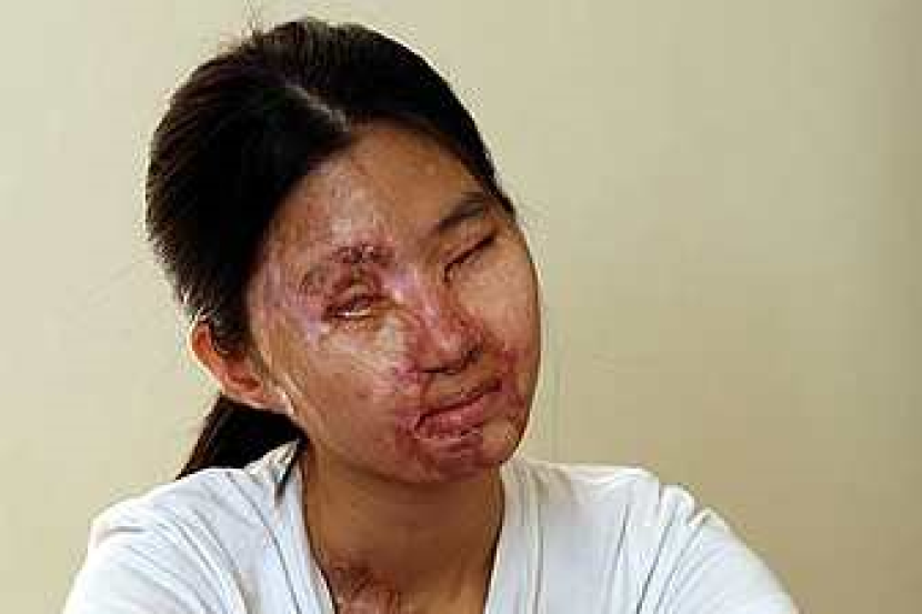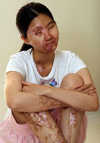Sebahagian daripada muka dan anggota badan Hui Linn berparut selepas ayahnya Teik Swee, 54, menyimbah asid pada ibunya serta dirinya ketika mereka tidur di rumah di Jalan Tan Sri Teh Ewe Lim.