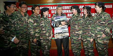 Terdahulu, Ahmad Zahid merasmikan Majlis Penyertaan Selebriti Dalam Askar Wataniah di Wisma Kementah di sini Khamis.