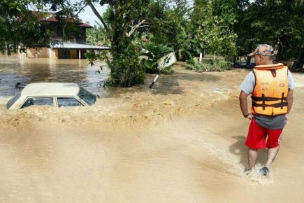 Seorang penduduk melihat sebuah kereta ditenggelami air banjir di Kampung Baru Kuala Dipang. Foto THE STAR KAMPAR: Seramai 1,145 penduduk dari tujuh buah kampung di sini dipindahkan sejak pagi tadi setelah kediaman mereka dinaiki air sedalam lebih tiga meter berikutan hujan lebat sejak petang Rabu hingga awal pagi Khamis.Menteri Besar Perak, Datuk Seri Dr Zambry Abdul Kadir berkata, seramai 767 orang ditempatkan di Dewan Sekolah Menengah Kebangsaan Kampar sementara 378 lagi di tempatkan di Dewan Pulau Bergading dekat Malim Nawar. Beliau berkata hujan lebat yang turun sejak semalam menyebabkan banjir melanda di beberapa kawasan di negeri itu. "Kira-kira 300 keluarga di sekitar Ijok di daerah Larut Matang turut terjejas dan dipindahkan akibat banjir," katanya.Dr Zambry berkata beliau telah mengarahkan Majlis Keselamatan Negara memantau keadaan banjir dan operasi menyelamatkan mangsa banjir di kawasan yang terjejas. "Kita pohon kementerian terlibat di peringkat kebangsaan untuk membantu mangsa banjir di negeri ini dan kita telah arahkan Majlis Keselamatan Negeri (MKN) untuk memantau situasi ini," katanya.Tinjauan di beberapa kawasan di Kampar hari ini mendapati terdapat puluhan kereta yang rosak tersadai di bahu jalan dan sehingga petang ini terdapat kawasan yang masih ditenggelami air.Ban di tebing Sungai Kampar berhampiran Kampung Nyior juga rosak sepanjang kira-kira 20 meter mengakibatkan air dari Sungai Kampar melimpah ke kawasan berhampiran. Beberapa buah rumah juga kelihatan tenggelam hingga ke paras bumbung.Seorang peniaga kedai perabot kayu jati di Kampung Nyior, Mohd Yusri Basiran berkata kesemua perabot di kedainya yang bernilai kira-kira RM600,000 musnah. "Saya tidak ada di kedai semasa air naik. Dua pekerja saya yang sedang tidur di salah sebuah bilik di kedai ini hanya menyedari air naik apabila air sampai ke paras katil pada kira-kira pukul 6 pagi ini," katanya yang membuka kedai perabot itu pada tahun 2010.Katanya kesemua perabot berkenaan perlu dibaiki dan dicat semula."Kayu jati tidak rosak bila kena air. Tapi saya kena ganti kusyen pada kerusi dan sofa," katanya.Sementara itu, Hairof Tak, 57, berkata beliau hanya menyedari air naik ketika beliau bangun tidur untuk ke tandas pada kira-kira pukul 7 pagi."Air naik begitu cepat. Saya dan isteri saya tidak sedar langsung. Kami hanya sempat menyelamatkan diri. Semua perabot dan barang elektrik termasuk televisyen dan mesin basuh tenggelam. Motosikal saya juga tidak sempat diselamatkan," katanya sambil menjelaskan rumahnya ditenggelami air hingga ke paras bumbung.