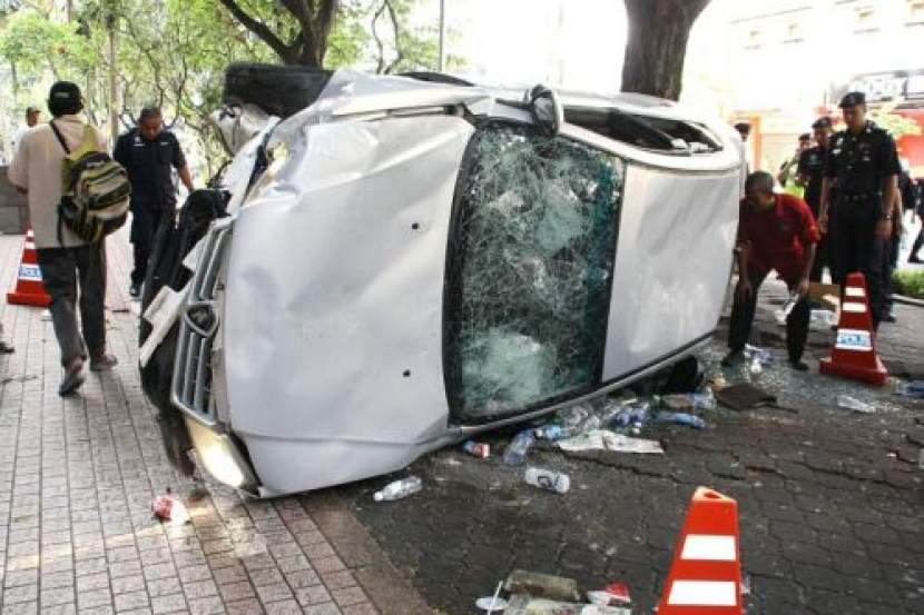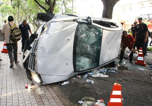 Kereta polis rosak teruk selepas diserang sekumpulan perusuh. Foto SHAHRUL FAZRY ISMAIL/The Star KUALA LUMPUR: Sekumpulan penyokong Bersih 3.0 menyerang dan menterbalikkan sebuah kereta polis di hadapan Sogo di sini sebelum melarikan diri.Timbalan Ketua Polis Kuala Lumpur Datuk Amar Singh berkata, kereta polis tersebut sedang melalui kawasan berkenaan pada pukul 4.50 petang sebelum sekumpulan penyokong mengepung kereta itu. Kemudiannya, mereka memaksa beberapa anggota polis untuk keluar sebelum bertindak merosakkan dan menterbalikkan kereta tersebut.Sementara itu, PDRM dalam laman Twitter turut memberitahu, sepucuk pistol seorang anggota polis turut dirampas di Sogo.Namun, Amar tidak dapat mengesahkan insiden itu.