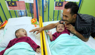 Muaiman dan Muaimin yang bercantum di bahagian tulang pinggul dan turut berkongsi pundi kencing berjaya dipisahkan selepas menjalani pembedahan 24 jam oleh pasukan perubatan HKL.