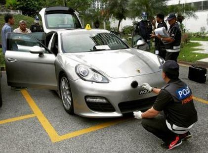 Polis menemui kereta Porsche bernilai RM900,000 yang dicuri dari bilik pameran 11 Oktober lalu.KUALA LUMPUR: Polis telah menemui kereta Porsche Panamera berharga RM900,000 yang telah dipandu keluar dari bilik pameran di Jalan Bukit Bintang pada 11 Oktober.Ketua Jabatan Siasatan Jenayah K.Lumpur Datuk Ku Chin Wah berkata, kereta itu ditemui berhampiran sebuah kondominium di Seri Kembangan sekitar tengah hari Isnin. Tiada tangkapan telah dibuat, katanya.Polis telah menahan lelaki berpakaian kemas berusia 31 tahun yang berjalan ke dalam bilik pameran, mengambil sampul surat dengan kunci dan memandu kereta keluar dari bilik pameran.Lelaki itu, yang berkata dia telah dibayar RM30,000 untuk mencuri kereta telah menyerahkannya kepada seorang lelaki yang dikenalpasti polis sebagai Shoo Kar Sin, 42, yang sebelum ini mempunyai empat tuduhan berkaitan curi kereta terhadapnya.