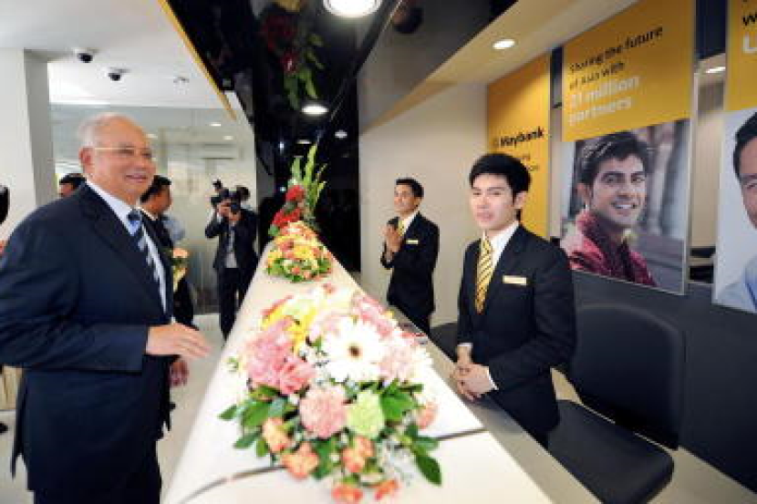 Perdana Menteri, Datuk Seri Najib Tun Razak ketika melawat cawangan bank Maybank Berhad pertama di Laos yang terletak di Lanexang Avenue selepas beliau merasmikannya. -fotoBERNAMAVIENTIANE: Perkhidmatan bank utama Malaysia, Maybank kini boleh didapati di negara-negara Asean, apabila membuka cawangan pertamanya di sini Isnin.Cawangan itu, yang terletak di pusat kewangan bandar itu menawarkan pelbagai jenis perkhidmatan termasuk perbankan runcit dan perniagaan, pertukarang mata wang asing, kiriman wang dan perkhidmatan simpanan. Cawangan bank itu di Laos dibuka oleh Perdana Menteri, Datuk Seri Najib Tun Razak yang berada di negara itu bagi menghadiri Kemuncak Asia-Eropah (Asem).Dalam ucapannya, Najib mengucapkan tahniah kepada Maybank kerana meletakkan pencapaian di seluruh rantau ini, sambil menambah bahawa dalam tempoh 50 tahun, Maybank dapat berkembang daripada beberapa cawangan kepada ratusan untuk mendekati rantau ini.“Majlis hari ini bukan sahaja signifikan untuk Maybank tetapi juga Malaysia. Ia mengesahkan tentang peranan perbandanan Malaysia yang boleh dimainkan dalam menyokong pertumbuhan di negara-negara jiran.“Ia bercakap tentang volum mengenai potensi Laos sebagai sebuah destinasi perdagangan dan pelaburan,” katanya.Presiden dan Ketua Pegawai Eksekutif Maybank, Datuk Seri Abdul Wahid Omar berkata, bank itu melihat Asean sebagai pasaran induknya selain mempunyai 392 cawangan di Malaysia, ia turut mempunyai 22 cawangan di Singapura, 376 cawangan di Indonesia, 52 di Filipina, 11 di Kemboja, tiga di Brunei dan dua cawangan di Vietnam.Dengan pembukaan Maybank cawangan Laos, kami telah menyempurnakan kehadiran fizikal kami merentasi semua negara Asean. Ini penting kerana kami kini mampu menyokong pelanggan serantau kami kerana mereka menggembangkan operasi mereka di seluruh Asean,” katanya.