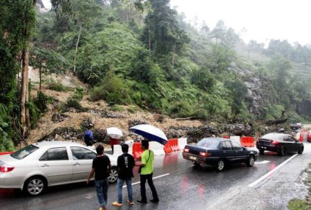 Beginilah keadaan tanah runtuh di Jalan Hulu Langat berdekatan Menara Tinjau, Ampang, Selangor. Gambar: Utusan Malaysia
