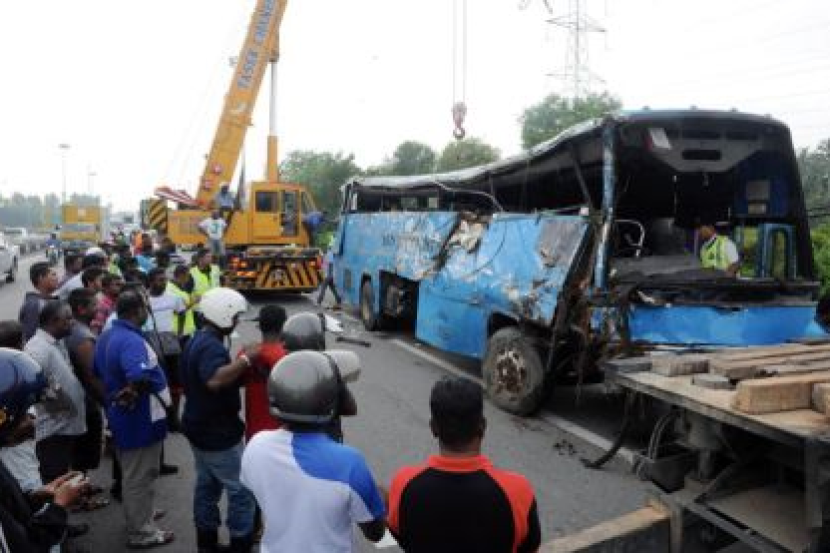 Keadaan sebuah bas kilang yang remuk menyebabkan dua maut di Kilometer 150.3 Lebuhraya Utara-Selatan (Plus) berhampiran susur keluar Bukit Tambun di Nibong Tebal, kira-kira pukul 6.30 pagi Jumaat. -Foto BERNAMANIBONG TEBAL: Dua pekerja kilang maut apabila bas yang dinaiki terlibat dalam kemalangan dengan sebuah kereta di Kilometer 150.3 Lebuhraya Utara-Selatan (Plus) berhampiran susur keluar Bukit Tambun, di sini pagi Jumaat.Ketua Polis Daerah Seberang Perai Selatan, Supt Shafien Mamat berkata dalam kejadian kira-kira pukul 6.30 pagi itu, Nurul Nadirah Sudin, 18, dan Samsiah Hasan, 22, masing-masing berasal dari Taiping dan Batu Kurau, Perak, meninggal dunia di tempat kejadian. "Kejadian dipercayai berlaku apabila bas yang membawa 17 pekerja kilang dalam perjalanan dari Tanjung Piandang, Perak ke kawasan perindustrian di Perai, cuba memasuki lorong kiri lebuh raya sebelum hilang kawalan lalu merempuh kereta yang bergerak seiring di lorong kiri."Kedua-dua kenderaan itu terbabas dengan bas terbalik ke kawasan semak di kiri lebuh raya," katanya kepada pemberita di tempat kejadian.Beliau berkata pemandu bas dan sembilan pekerja kilang yang cedera kini dirawat di Hospital Seberang Jaya manakala enam lagi pekerja yang cedera ringan telah dibenarkan pulang.Katanya, pemandu kereta berusia 21 tahun itu hanya mengalami cedera ringan. Shafien berkata jenazah kedua-dua pekerja itu telah dituntut oleh keluarga masing-masing.Sementara itu, bapa Nurul Nadirah, Sudin Ismail, 45, ketika ditemui berkata beliau mendapat panggilan daripada abang iparnya kira-kira pukul 6.45 pagi memberitahu kemalangan itu, bagaimanapun beliau tidak diberitahu yang anaknya telah meninggal dunia.Beliau berkata beliau amat terkejut dengan berita kematian anaknya itu yang kali terakhir mereka berjumpa ialah minggu lepas.Ibu saudara Nurul Nadirah, Hamisah Samsudin, 37, berkata bas terhuyung-hayang secara tiba-tiba hingga menyebabkannya memegang kerusi dengan kuat."Sedar-sedar bas dah terbalik. Saya merangkak keluar mengikut cermin hadapan bas," kata ibu kepada tiga orang anak itu yang cedera di bahu.Seorang lagi mangsa, Fazilawati Md Rasdi, 30, dari Batu Kurau berkata ketika kejadian beliau sedang tidur dan hanya menyedari kejadian itu selepas terdengar jeritan rakan sekerjanya sebelum bas itu terbalik. - BERNAMA