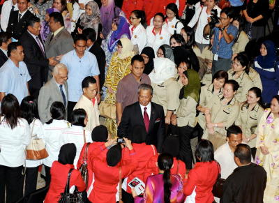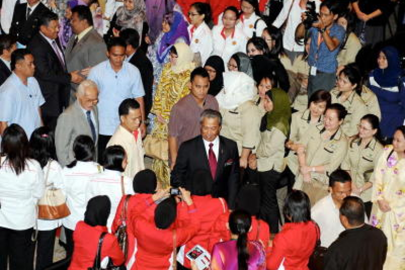 Timbalan Perdana Menteri Tan Sri Muhyiddin Yassin bersalaman dengan sebahagian daripada penjawat awam seluruh negeri yang menghadiri majlis perjumpaan Timbalan Perdana Menteri dengan Penjawat Awam di Kuching, Isnin. Turut hadir Ketua Menteri Sarawak Tan Sri Abdul Taib Mahmud. -fotoBERNAMA KUCHING: Timbalan Perdana Menteri Tan Sri Muhyiddin Yassin berkata cadangan pembinaan pusat pentadbiran persekutuan bernilai RM2 bilion di kawasan Rambungan-Sempadi dekat sini mungkin dapat dilaksana secara berfasa dalam tempoh terdekat.Beliau berkata projek itu akan diteruskan atas komitmen kerajaan Persekutuan jika konsepnya dapat diterima dan wang peruntukan dapat disediakan. "Satu kajian mendalam sedang dibuatkan oleh pihak swasta yang bertugas di Jabatan Perdana Menteri, namun saya akan timbulkan cadangan tapak baharu berkenaan pada mesyuarat Kabinet yang akan datang," katanya pada sesi dialog sempena majlis perjumpaan bersama 3,000 penjawat awam di Sarawak Isnin.Berikutan persetujuan kerajaan pusat untuk membangun pusat baharu sejak 1997, pembinaan jalan raya ke tapak itu sepanjang 25 kilometer, yang menelan kos hampir RM300 juta, sudah siap memandangkan potensi impak pembangunan, termasuk dari segi sektor pelancongan dan pertanian.Menjawab satu soalan, Muhyiddin berkata projek sebesar itu memang mampu menjadi pemangkin dengan kesan limpahan ekonomi ke kawasan sekitar selain satu strategi mengurangkan kesesakan lalu lintas, terutama di tengah bandaraya Kuching.Dalam pada itu, beliau berkata pembangunan pesat serta keamanan yang dinikmati rakyat di negara ini adalah hasil perjuangan bersama kerajaan Barisan Nasional (BN) dengan penjawat awam.Beliau berharap usaha yang dilakukan dapat diteruskan jika ada gandingan dan kerjasama antara kerajaan dan penjawat awam. - BERNAMA