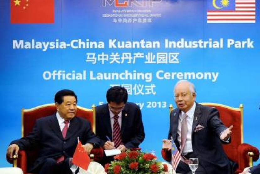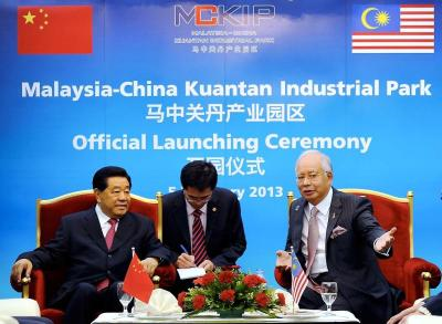 Najib (kanan) berbual sesuatu dengan Pengerusi Persidangan Konsultatif Politik Republik Rakyat China Jia Qinglin ketika melancarkan Taman Industri Malaysia-China Kuantan (MCKIP) di Gebeng, Kuantan, Selasa. -fotoBERNAMAKUANTAN: Taman Perindustrian Malaysia-China Kuantan (MCKIP) kini secara rasmi dibuka untuk perniagaan selepas menyaksikan pelaburan berbilion ringgit hanya dalam tempoh empat bulan.Ketika melancarkan taman ini di sini pada Selasa, Perdana Menteri Datuk Seri Najib Tun Razak berkata taman ini merupakan taman perindustrian pertama di Malaysia yang akan diberi status negara, yang bermaksud ia akan dipacu oleh sektor swasta tetapi dengan panduan Kerajaan. Dengan hubungan Malaysia-China yang sudah sampai ke kemuncaknya, beliau juga mengumumkan kedua-dua negara telah memuktamadkan program yang akan menyaksikan kerjasama dan komitmen antara satu sama lain yang lebih mendalam bagi tempoh lima tahun akan datang.Program Pembangunan Lima Tahun untuk Kerjasama Ekonomi dan Perdagangan dijangka sedia untuk dipertimbangkan pada suku pertama tahun ini dan akan membuka peluang kerjasama antara sekarang dan 2017, kata Najib."Lebih sedekad yang lalu, dunia telah sampai ke tahap di mana model keperluan sumber di China telah mencipta corak perdagangan dan pengaruh yang baru."Sekarang dunia mula menyedari bahawa inovasi masyarakat Cina dan permintaan domestik membuktikan kuasa dalam ekonomi global."Maka dengan kerjasama ekonomi dan diplomatik - Saya bangga untuk mengatakan bahawa Malaysia berada semakin ke hadapan," kata Najib.Pengerusi Persidangan Konsultatif Politik Republik Rakyat China, Jia Qinglin yang bersama-sama Najib melancarkan taman tersebut memuji Malaysia kerana mengambil usaha untuk mengukuhkan hubungan antara kedua-dua negara.Malaysia telah menjadi rakan dagang Asean China teratas selama lima tahun berturut-turut.Taman ini dijangka siap sepenuhnya dalam tempoh dua tahun dan telah menarik komitmen pelaburan bernilai RM10.5 bilion, mewujudkan 8,500 peluang pekerjaan.