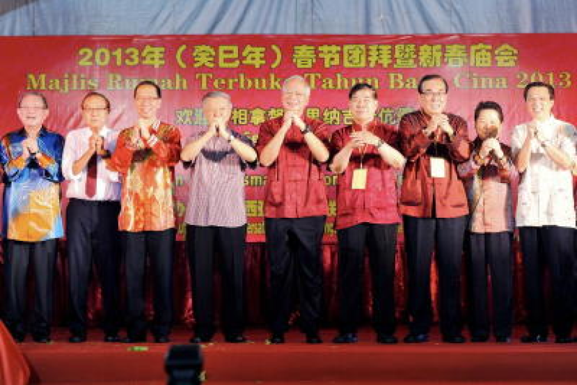 Perdana Menteri Datuk Seri Najib Tun Razak (tengah) bergambar bersama tetamu kehormat pada Majlis Rumah Terbuka sambutan Tahun Baru Cina di Dong Jiao Zong Higher Learning Centre, Kajang, Ahad. Turut hadir Presiden Parti Gerakan, Tan Sri Dr Koh Tsu Koon (tiga,kiri), Presiden Malaysian Chinese Association (MCA), Datuk Seri Dr Chua Soi Lek (empat,kiri), dan Pengerusi Dong Zong, Dr Yap Sin Tian (empat,kanan). -fotoBERNAMAKAJANG: Perdana Menteri Datuk Seri Najib Tun Razak pada Ahad melakar sejarah menjadi perdana menteri pertama menghadiri aktiviti anjuran Persekutuan Persatuan-Persatuan Lembaga Pengurus Sekolah Cina Malaysia (Dong Zong) sejak 59 tahun penubuhan persatuan itu.Kehadiran Najib pada majlis Rumah Terbuka Tahun Baru Cina di Pusat Pengajian Tinggi Dong Jiao Zong di sini pada kira-kira pukul 9.45 pagi disambut Pengerusi Dong Zong Dr Yap Sin Tian serta wakil-wakil persatuan lain. Turut hadir Menteri Kesihatan Datuk Seri Liow Tiong Lai, Menteri di Jabatan Perdana Menteri Tan Sri Dr Koh Tsu Koon, Presiden MCA Datuk Seri Dr Chua Soi Lek dan Timbalan Menteri Pelajaran Datuk Dr Wee Ka Siong.Perdana Menteri turut menyertai acara "Lao Shang" dan menulis kaligrafi yang membawa makna "menyambut tahun baharu bersama-sama".Acara kaligrafi berkenaan juga disertai Dr Yap, Timbalan Pengerusi Dong Zong Chow Siew Hon, Pengerusi Gabungan Persatuan Guru-Guru Sekolah Cina Malaysia (Jiao Zong) Ong Chiow Chuen dan Pengerusi Merdeka University Berhad Foo Wan Thot.Najib bersama tetamu kemudiannya menikmati hidangan sambil dihiburkan dengan persembahan pentas.Lebih 5,000 tetamu turut hadir pada majlis itu dan mereka dihiburkan dengan persembahan tarian singa, persembahan muzik dan nyanyian tradisional Tionghua.Orang ramai rata-rata teruja dengan kehadiran perdana menteri serta tidak melepaskan peluang untuk bersalaman dengan pemimpin nombor satu negara itu semasa beliau hendak meninggalkan majlis kira-kira pukul 10.30 pagi.Majlis tersebut dianjurkan bersama Gabungan Persatuan Guru-Guru Sekolah Cina Malaysia, Merdeka University Berhad, Persekutuan Persatuan-Persatuan Tiong Hua daerah Hulu Langat, Dong Jioa Zong Higher Learning Center, Persatuan Lembaga Pengurus Sekolah-Sekolah Cina setiap negeri dan Kolej New Era.Sementara itu, Timbalan Pengerusi Dong Zong Chow Siew Hon ketika ditemui pemberita berkata kehadiran perdana menteri memberi satu permulaan baik kepada penambahbaikan sekolah aliran Cina."Jelas kelihatan keikhlasan perdana menteri ketika hadir pada majlis hari ini dan kami gembira dengan kehadiran beliau," katanya. - BERNAMA