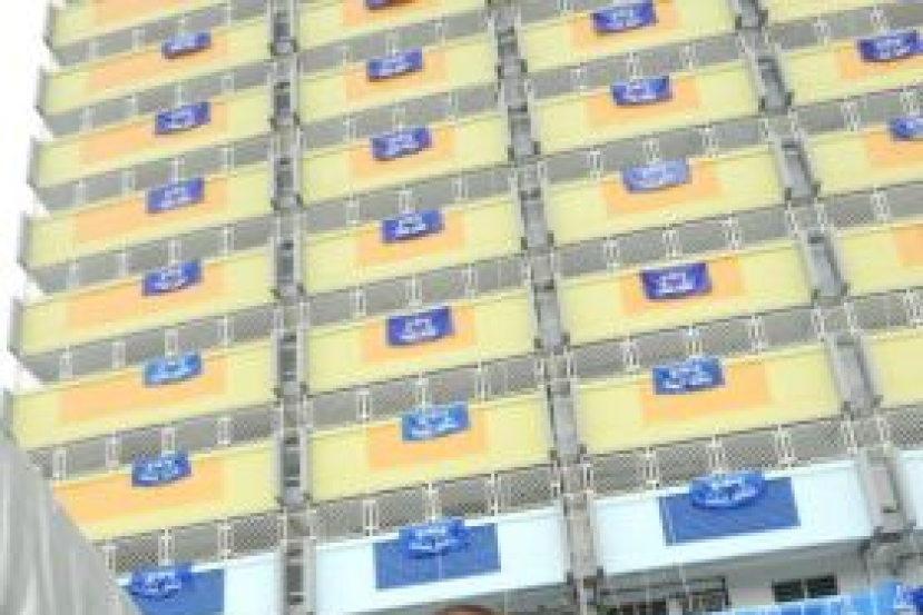 Bangunan rumah pangsa setinggi 20 tingkat ini telah dicat dengan warna biru dan kuning selain mengalami proses penyelenggaraan dan baik pulih.