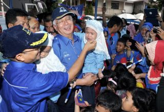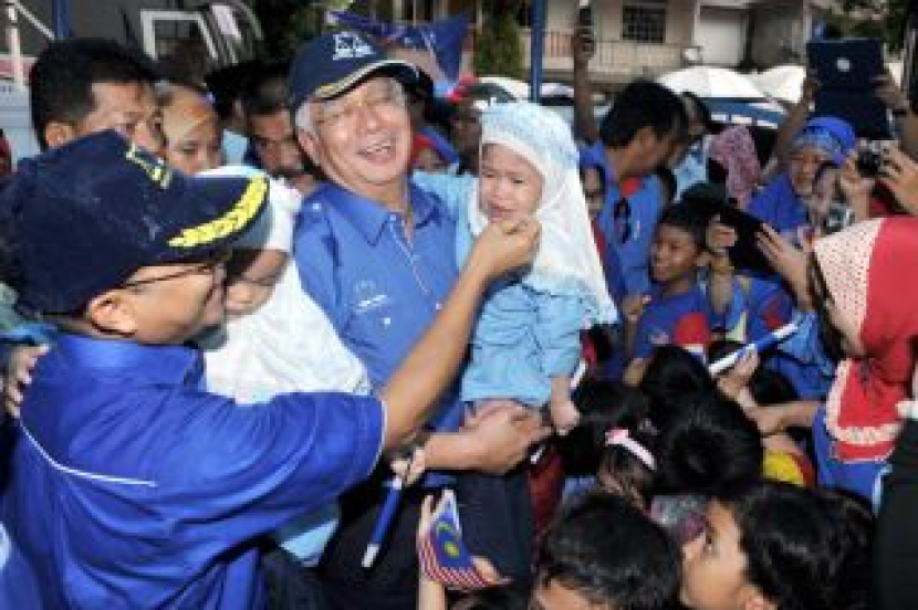 Najib bersama Zulkifli Noordin (kiri) mendukung pasangan adik-beradik kembar Aina Baharudin (kanan) dan Aini Baharudin, 5, ketika hadir membuat lawatan di Pusat Daerah Mengundi Seksyen 18 Timur di Shah Alam, Selangor pada Isnin.- FotoBERNAMASHAH ALAM: Datuk Seri Najib Tun Razak yakin pengundi India di kawasan Parlimen Shah Alam sudah menerima dan menyokong calon Barisan Nasional (BN) Datuk Zulkifli Noordin pada Pilihan Raya Umum ke-13 (PRU-13).Perdana Menteri berkata ada di antara masyarakat India yang sampai telah mencium Zulkifli. "Soal cakap 10 tahun dulu, Zukifli sudah meminta maaf dan orang India terima dan cium dia," katanya dalam ucapan ringkas ketika melawat Pusat Daerah Mengundi Seksyen 18 Timur di sini Isnin. Gambar Zulkifli dicium oleh seorang pemuda India pada hari penamaan calon tersebar luas apabila dimuatkan di facebook.Turut mengiringi dalam lawatan Najib petang ini ialah isteri beliau Datin Seri Rosmah Mansor, Timbalan Pengerusi BN Selangor Datuk Seri Noh Omar dan Zulkifli.Pada 1 April, Zulkifli memohon maaf kepada penganut agama Hindu dan mengakui pernah membuat ucapan yang mempersenda agama itu tetapi beliau telah mengakui kesilapannya kerana ucapan itu telah dibuatnya 10 tahun lalu ketika beliau masih berada dalam PAS.Najib berkata semangat tinggi yang ditunjukkan oleh para pekerja parti dalam jentera pilihan raya BN Shah Alam boleh membantu BN merampas kembali kerusi Parlimen Shah Alam serta dua kerusi Dewan Undangan Negeri (DUN) Kota Anggerik dan Batu Tiga dari tangan pembangkang.Jentera BN perlu berusaha keras merampas kembali Selangor pada PRU13 dan ia adalah penting bagi BN kerana sebahagian besar kekayaan negara bertumpu di negeri itu."Kerajaan Selangor telah menghalang projek loji air Langat 2 dan kita akan menghadapi masalah air bersih jika kita tidak ambil alih Selangor ini."Demi perjuangan negara, kita akan berjuang habis-habisan," katanya disambut sorakan gemuruh oleh jentera BN Shah Alam.Najib turut berikrar untuk menjaga kebajikan orang India di kawasan Shah Alam dan akan memenuhi permintaan mereka.Hujan lebat semasa lawatan Perdana Menteri tidak menghalang penduduk di Seksyen 18, daripada keluar beramai-ramai untuk mendekati dan beramah-mesra dengan Najib.Sebahagian daripada mereka tidak berganjak dari tempat duduk masing-masing untuk mendengar sendiri ucapan dan nasihat Najib, yang juga Pengerusi BN Selangor.Seorang anggota Pergerakan Puteri Umno dari cawangan Seksyen 18 Timur, Nurul Aqmal Mohd Amin berkesempatan memotong kek sempena hari jadinya ke-25 sambil disaksikan Najib dan Rosmah pada acara itu.Najib dan Rosmah turut menjamu selera bersama penduduk tempatan pada akhir lawatannya itu.Pada sidang akhbar kemudiannya di sebuah hotel di sini, Najib berkata Zulkifli sudahpun berjuang untuk isu melibatkan kaum India seperti Sekolah Tamil, dan kuil di Shah Alam dan rakyat sudah mula menyokong beliau."Berbanding dengan PR (pakatan pembangkang), mereka musnahkan tujuh kuil di Selangor, macam mana itu tidak jadi isu besar...tidakkah itu lebih serius, tamparan lebih hebat kepada penganut Hindu?," kata beliau.Hujan lebat semasa lawatan Perdana Menteri tidak menghalang penduduk di Seksyen 18, daripada keluar beramai-ramai untuk mendekati dan beramah-mesra dengan Najib.Sebahagian daripada mereka tidak berganjak dari tempat duduk masing-masing untuk mendengar sendiri ucapan dan nasihat Najib, yang juga Pengerusi BN Selangor.Seorang anggota Pergerakan Puteri Umno dari cawangan Seksyen 18 Timur, Nurul Aqmal Mohd Amin berkesempatan memotong kek sempena hari jadinya ke-25 sambil disaksikan Najib dan Rosmah pada acara itu.Najib dan Rosmah turut menjamu selera bersama penduduk tempatan pada akhir lawatannya itu. - BERNAMA