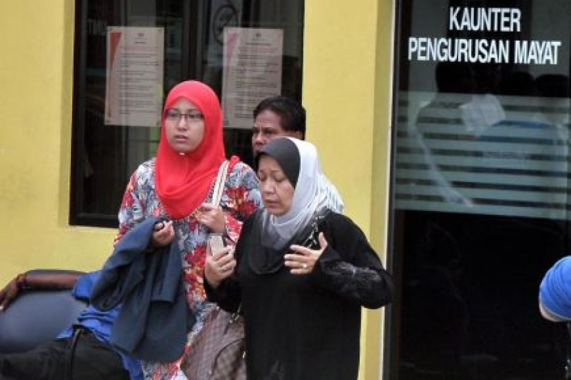 SEBAK… Ahli keluarga Timbalan Ketua Pengarah Kastam, (Perkastaman/Cukai Dalam Negeri) Datuk Shaharuddin Ibrahim ketika menunggu di luar bilik mayat di Hospital Kuala Lumpur pada Jumaat.Allahyarham Shaharuddin, 58, yang tinggal di Dengkil, Selangor, mati ditembak ketika dalam perjalanan ke pejabatnya di Putrajaya. -Foto BERNAMA