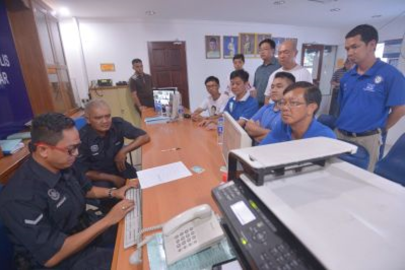 Calon MCA Kampar Datuk Lee Chee Leong (duduk tiga dari kanan) membuat laporan polis berhubung dakwaan yang dibuat calon DAP Dr Ko Chung Sen di ibu pejabat polis daerah Kampar di pekan Kampar pada Rabu. -Foto THE STAR