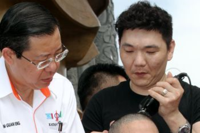Guan Eng hadir bagi memberikan sokongan kepada isterinya Betty Chew yang membotakkan kepalanya sebagai bantahan terhadap politik wang. - Foto THE STAR