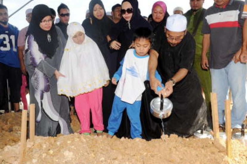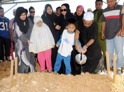 Suasana pilu dapat dirakamkan ketika Pengasas produk kecantikan Vida Beauty Datuk Dr Hamiza Osman atau dikenali sebagai Vida bersama dua anaknya Eric Zakuan,5 dan Noradeline, 8, menyiram air mawar ke pusara dua lagi anaknya yang selamat disemadikan di Tanah Perkuburan Islam Meru Raya, Ipoh, Ahad. Anak sulung VIda, Muhammad Eddie Zuhdie Mohd. Amin, 11, dan anak keduanya Muhammad Edrie Zikrie Mohd Amin, 10, serta pekerja Muhammad Nor Syamil Zaidi, 26, maut dalam kebakaran yang berlaku malam Sabtu. - fotoBERNAMA