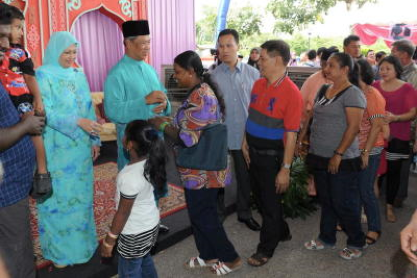 Orang ramai khususnya penduduk sekitar Parlimen Pagoh mengambil kesempatan bersalaman dengan Muhyiddin yang juga anggota Parliman kawasan itu serta isteri Puan Seri Noorainee Abdul Rahman.