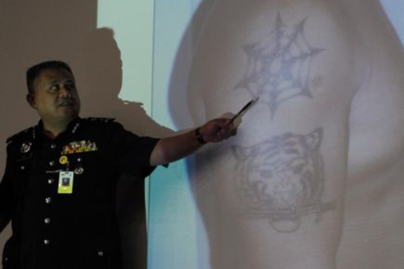 Ketua Penolong Pengarah D7 Jabatan Siasatan Jenayah Bukit Aman, Datuk Jalil Hasan menunjukkan salah satu jenis tatu yang digunakan oleh ahli pertubuhan kongsi gelap ketika sidang media mengenai logo dan tatu pertubuhan-pertubuhan kongsi gelap Malaysia di Bukit Aman, pada Jumaat.-Foto BERNAMA KUALA LUMPUR: Polis Diraja Malaysia (PDRM) menyiarkan logo 49 kumpulan kongsi gelap yang diwarta haram.Penolong Pengarah Kongsi Gelap/Judi/ Maksiat (D7) Bukit Aman Datuk Abdul Jalil Hassan berkata logo berkenaan dipapar dalam laman sosial Facebook PDRM agar orang ramai memahami maksud sesebuah logo itu sekali gus menghindari mereka daripada terlibat dengan sebarang kumpulan kongsi gelap. "Pada peringkat awal ini, kita melalui program kepolisan dan pemeriksaan, akan menasihati orang ramai, yang memiliki atau menampal sebarang logo seperti di kereta dan rumah, supaya menanggalkannya dengan apa cara sekalipun."Ini juga bagi menghindarkan mereka ditahan pihak polis. Mungkin mereka tidak tahu apa maksud logo berkenaan dan tidak terlibatpun dalam mana-mana kongsi gelap. Namun jika mereka masih berdegil atau dikenal pasti memang terlibat dalam kegiatan itu, tindakan tegas akan diambil," katanya pada sidang akhbar pada Jumaat.Sidang akhbar itu turut memapar kesemua 49 logo kumpulan kongsi gelap berkenaan dan tatu logo yang dilukis pada badan melalui skrin selain penerangan berkaitan bangsa sesebuah kumpulan.Antara kumpulan kongsi gelap itu ialah Geng 04 yang aktif di Kedah, Pulau Pinang, Johor dan Kuala Lumpur; Geng 08 aktif di Kuala Lumpur, Selangor, Pulau Pinang, Perak, Johor, Negeri Sembilan dan Melaka serta Double 7 yang bergerak aktif di seluruh Semenanjung.Abdul Jalil berkata polis juga akan memantau penggunaan logo terbabit pada kenderaan yang diguna ketika perarakan atau upacara pengebumian."Kita akan 'turun padang'. Kalau kita lihat ada logo itu diletak pada kenderaan yang membawa mayat, kita akan minta mereka tanggalkannya," katanya sambil meminta ibu bapa memantau pergerakan anak mereka agar tidak terjebak atau menyertai mana-mana kumpulan kongsi gelap."Melalui risikan dan siasatan kita, setakat ini belum ada laporan pelajar sekolah di seluruh negara mengetuai mana-mana kumpulan kongsi gelap. Namun ada maklumat mengatakan kumpulan ini cuba mempengaruhi pelajar terutama di sekolah yang bermasalah."Mereka (kumpulan) akan berada di luar kawasan sekolah untuk memujuk pelajar agar menyertai mereka. Ada juga maklumat yang mengatakan kumpulan ini cuba merekrut pelajar di dalam kawasan sekolah, namun hasil tindakan pantas Persatuan Ibu Bapa dan Guru (PIBG) serta polis yang ditempatkan di dalam sekolah, perkara ini dapat dihindarkan," katanya. Mengulas penglibatan golongan atasan seperti ahli politik dan selebriti dalam kegiatan itu, Abdul Jalil berkata setakat ini, polis tidak mendapat maklumat mereka terlibat, namun siasatan lanjut akan dijalankan.Beliau berkata mereka yang terbabit dalam kumpulan kongsi gelap boleh dihukum mengikut Seksyen 52 (3) Akta Pendaftaran Pertubuhan 1956 yang membawa hukuman maksimum penjara lima tahun, atau denda RM15,000, jika sabit kesalahan.Katanya, seramai 28,926 orang dari kaum India dikesan menganggotai kongsi gelap, Cina (8,214) dan Melayu (1,923) manakala tiada penglibatan warga asing dalam kumpulan itu di negara ini."Ada antara mereka pernah ditahan di bawah undang-undang Akta Darurat," katanya sambil menafikan tumpuan lebih diberikan kepada kaum India kerana mereka paling ramai dikesan terlibat dalam aktiviti itu.Ketua Setiausaha Kementerian Dalam Negeri Datuk Seri Abdul Rahim Mohamad Radzi, yang mengumumkan nama kongsi gelap terbabit semalam, berkata kumpulan itu dikategori haram mengikut Seksyen 5 (1) Akta Pertubuhan 1966 pada 28 Ogos 2013 melalui perwartaan P.U. (A) 272/2013.Beliau berkata kumpulan itu dikesan menjalankan kegiatan yang memudaratkan ketenteraman awam seperti sindiket pengedaran dadah, memeras ugut, menimbulkan pergaduhan antara pertubuhan kongsi gelap dan huru-hara. -BERNAMA