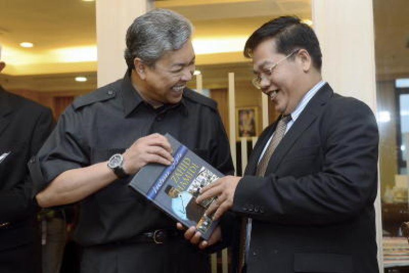 Menteri Dalam Negeri, Datuk Seri Dr Ahmad Zahid Hamidi menyerahkan cenderahati sebuah bukunya bertajuk "Lontaran Kata Zahid Hamidi" kepada Menteri di Jabatan Perdana Menteri Kemboja, Oknha Othman Hassan ketika menerima kunjungan beliau pejabatnya di Kementerian Dalam Negeri di Putrajaya, Isnin. -fotoBERNAMA