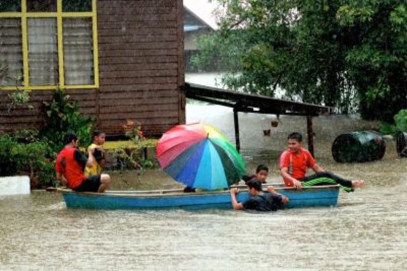 Penduduk Kampung Bukit Rangin di Kuantan terpaksa menyelamatkan diri dari terperangkap dalam banjir, Selasa.