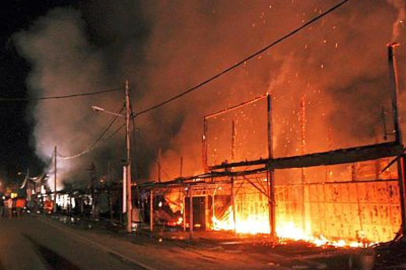 Beginilah keadaan kebakaran yang berlaku.SUNGAI SIPUT: Sederet 17 rumah kedai kayu hangus dalam kebakaran di Batu 1, Jalan Lintang di sini tengah malam Isnin.Penolong Pengarah Operasi Bomba dan Penyelamat Negeri Penguasa Kanan Bomba 1 Wan Azmi Ahmad berkata kejadian kira-kira 12.20 tengah malam itu membabitkan antaranya kedai perabot, bengkel motosikal, kedai makan dan kedai bunga. "Enam jentera dengan 34 anggota termasuk pegawai dari Balai Bomba dan Penyelamat Sungai Siput, Kuala Kangsar, Ipoh dan Meru Raya dikerahkan ke tempat kejadian dan api berjaya dikawal sepenuhnya dalam tempoh tiga jam," katanya kepada pemberita di tempat kejadian pada Selasa.Api berjaya dikawal daripada merebak ke premis bersebelahan dan tiada kemalangan jiwa dilaporkan.Beliau berkata bomba terpaksa mendapatkan bekalan air dari sungai berdekatan ekoran bekalan air yang disalurkan ke kawasan itu berada pada tekanan rendah.Jumlah kerugian dianggarkan RM1.5 juta dan Unit Forensik sedang menjalankan siasatan bagi mengenal pasti punca kebakaran, kata Wan Azmi.Seorang pemilik bengkel motosikal, S. Prakash Rao, 35, berkata dia terkejut setelah melihat bengkel yang diusahakannya sejak lapan tahun lepas musnah dalam kejadian itu. "Di dalam bengkel ada 10 buah motosikal pelanggan dan kesemuanya tidak dapat diselamatkan, kerugian dianggarkan hampir RM100,000," katanya.Sementara itu, Pengerusi Jawatankuasa Pembangunan Wanita, Keluarga, Kebajikan Masyarakat dan Integrasi Nasional Datuk Rusnah Kassim berkata kerajaan negeri akan berbincang dengan pemilik tanah untuk membangunkan semula rumah kedai yang musnah dalam kejadian itu."Perbadanan Kemajuan Negeri Perak (PKNP) sedang membangunkan pekan-pekan kecil. Kita akan minta pihak PKNP membangunkan semula kawasan itu dengan menyediakan rumah kedai untuk mangsa," katanya ketika melawat mangsa kebakaran.Dalam lawatan itu beliau turut menyampaikan sumbangan sebanyak RM500 dan barangan keperluan daripada Jabatan Kebajikan Masyarakat negeri kepada setiap mangsa. -BERNAMA