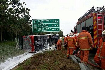 Ketua Balai Bomba dan Penyelamat Taiping, Hasna Rashid berkata, bas ekspres yang membawa 23 penumpang itu dalam perjalanan dari Lumut ke Alor Setar, dan terbabas ke kiri jalan di Kilometer 217.5 pada pukul 1.50 tengah hari.