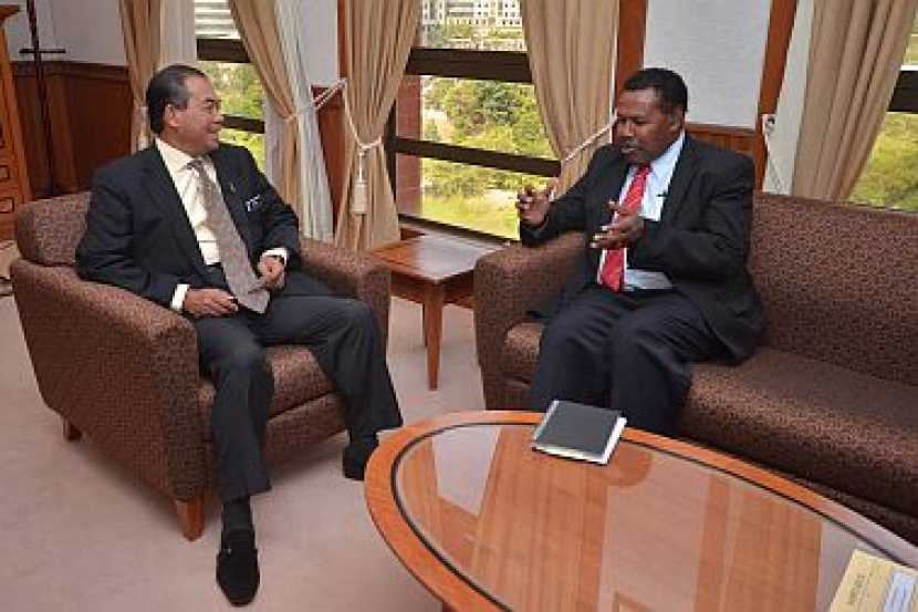 Abdul Aziz (kiri) menerima kunjungan hormat Pesuruhjaya Tinggi Kepulauan Solomon di Malaysia, Victor Samuel Ngele di pejabatnya pada Isnin.