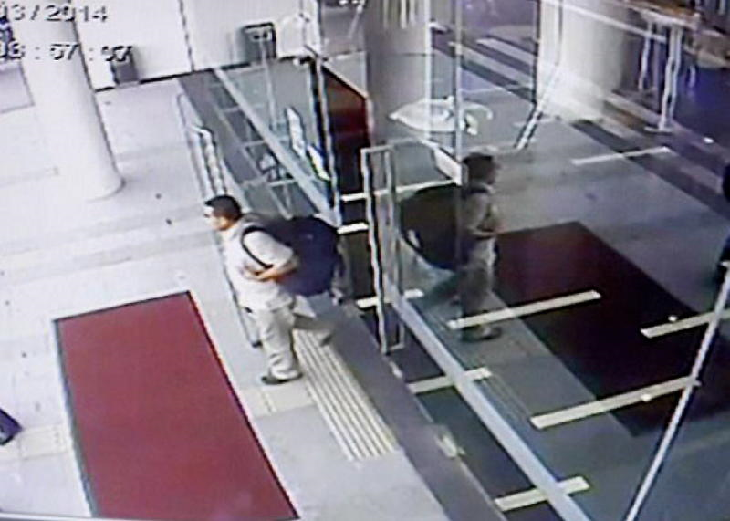 Dalam rakaman CCTV, suspek dalam keadaan mencurigakan sebelum mengambil beg itu dan meninggalkan hotel itu ketika kebanyakan petugas media sibuk membuat liputan di ruang lobi hotel.