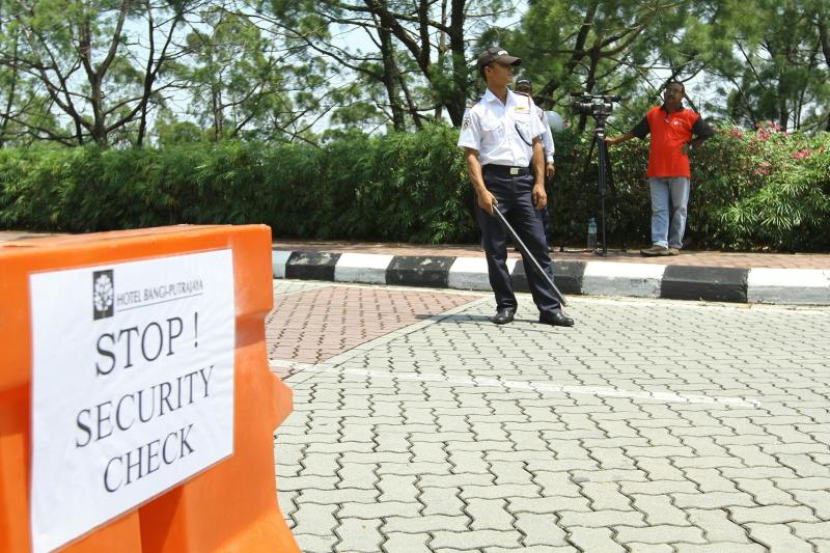 Beberapa pengawal keselamatan hotel dan pengawal keselamatan Malaysia Airlines (MAS) yang lengkap berpakaian seragam turut kelihatan mengawal sekitar hotel tersebut.