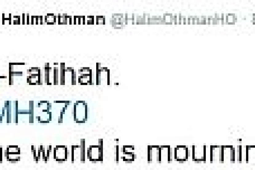 Hishammuddin sendiri turut membuat tweet: "Today - let us Malaysians of all race, religion, background and wherever we maybe pray for the passengers,crew and family of #MH370.
