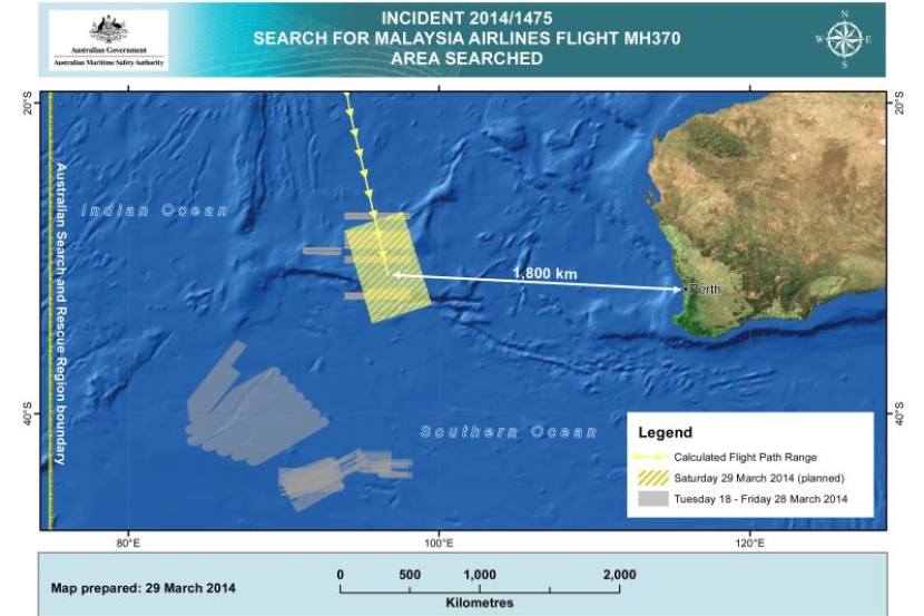 Pada Jumaat, kawasan pencarian bagi pesawat MH370 yang hilang dipindahkan ke suatu lokasi 1,100 kilometer ke timur laut berdasarkan nasihat terkini disediakan oleh pasukan siasatan antarabangsa di Malaysia.