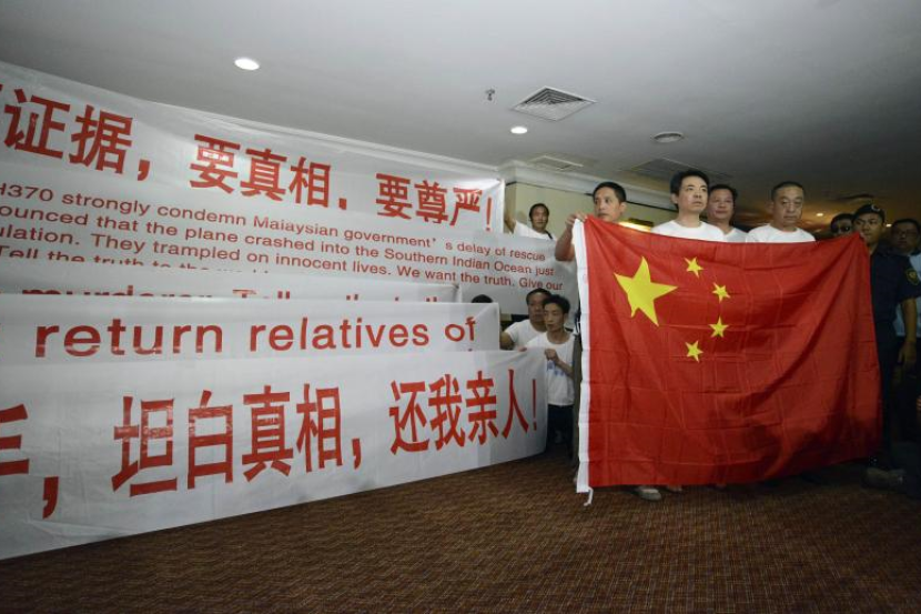 Pada sidang akhbar di hotel Holiday Villa, Ahad, kumpulan saudara-mara penumpang itu membawa sepanduk dan bendera China sebelum memberikan kenyataan tegas.