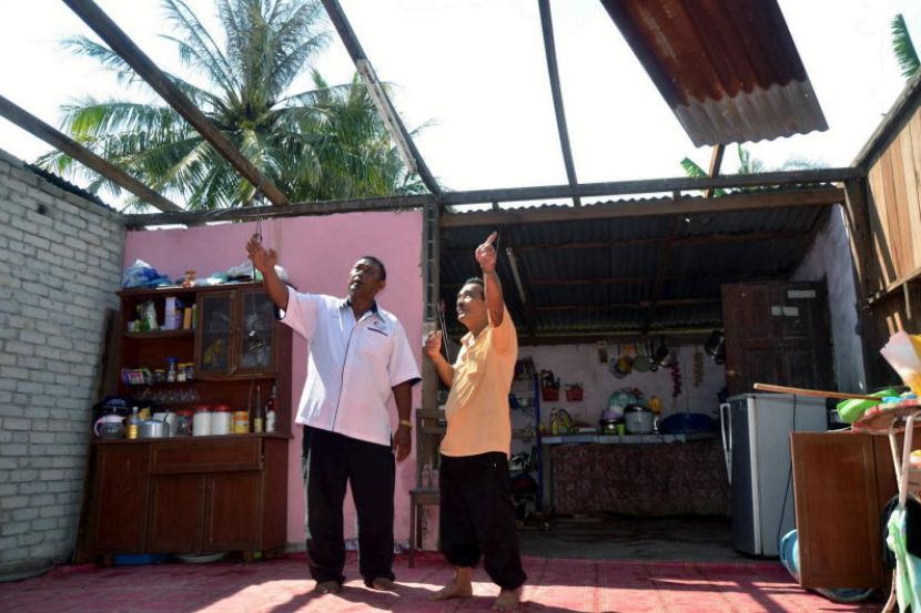 "Kami dengar bunyi angin yang kuat dan sekelip mata sahaja bumbung rumah kami diangkat angin. Kami lari ke rumah jiran kerana bimbang kejadian yang lebih buruk akan berlaku.