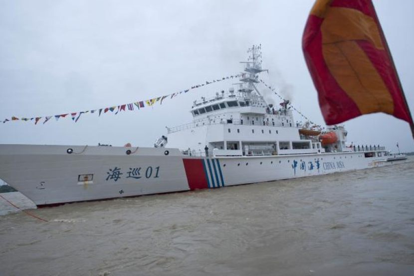 Gambar yang diambil pada 24 Julai 2013 menunjukkan kapal "Haixun 01" dari Pentadbiran Keselamatan Maritim China (MSA) di Jeti Bo Aung Kyaw di Yangon. Kapal dari China yang mencari pesawat MH370 itu mengesan "isyarat nadi" di selatan Lautan Hindi pada Sabtu namun tiada lagi ada bukti ia dikaitkan dengan pesawat yang hilang, lapor media. Foto AFP