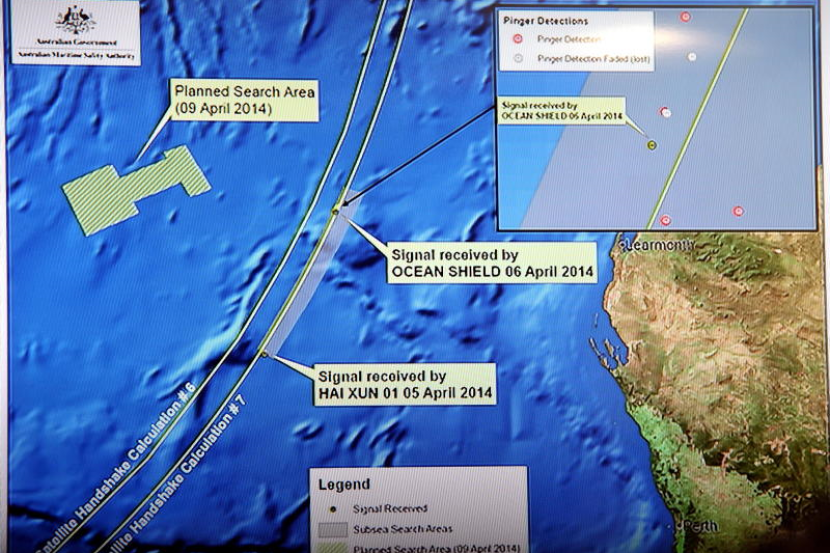Dalam usaha untuk mengecilkan misi pencarian di dasar laut sebelum Kenderaan Dalam Air Automatik digunakan, JACC berkata, Kapal Pertahanan Australia Ocean Shield menerusi alat Pengesan Pinger Ditunda akan cuba mengesan lokasi isyarat kotak hitam pesawat itu.