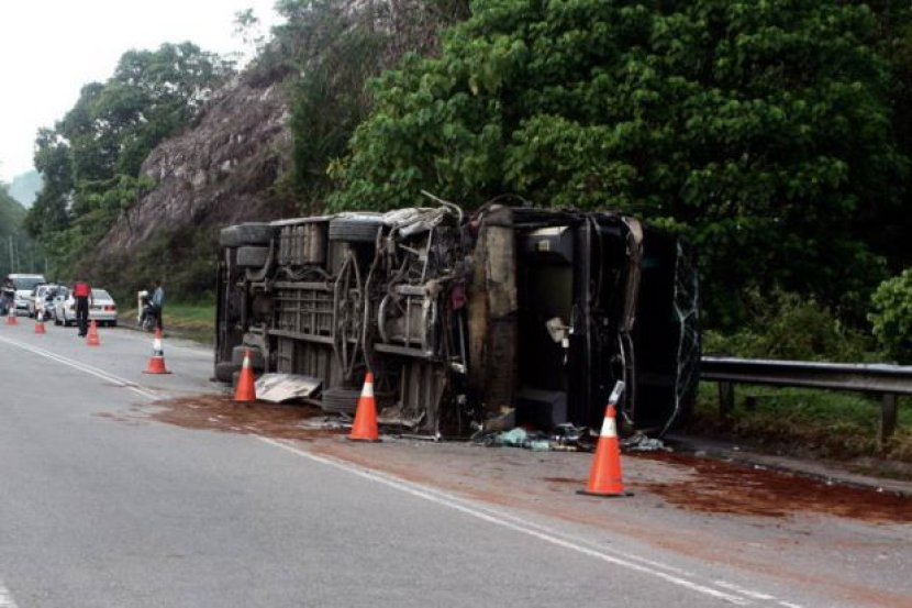 Bas ekspres Transnasional dua tingkat yang membawa 68 orang dalam perjalanan dari Kuala Lumpur ke Kota Baharu, Kelantan itu dilaporkan terbabas sebelum merempuh tiang elektrik dan terbalik.