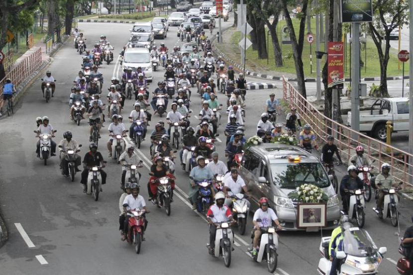GEORGE TOWN: Kira-kira 100 penunggang Superbike mengiringi kereta yang membawa keranda mendiang Karpal Singh tiba di Dewan Sri Pinang pada Ahad.