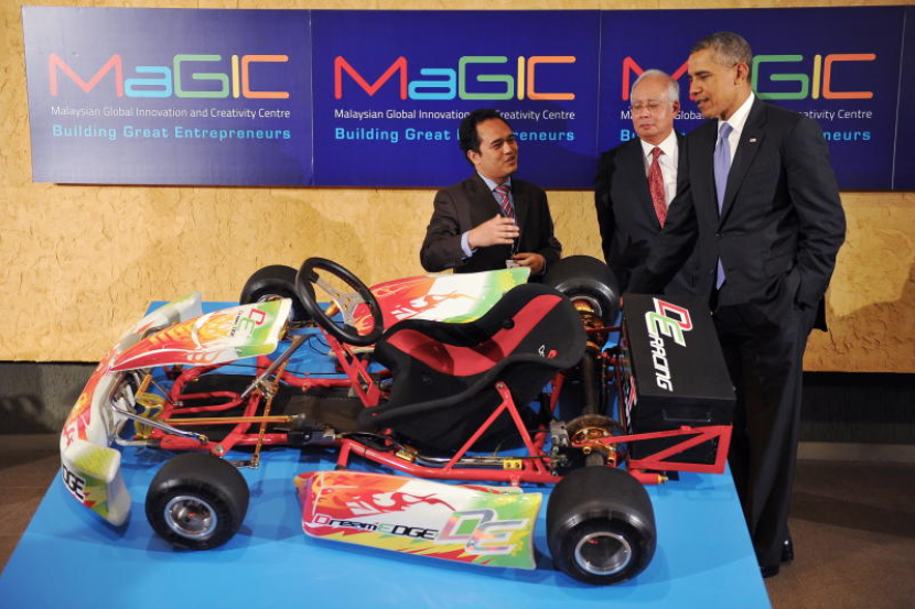Obama, yang dalam lawatan tiga hari ke Malaysia, singgah di Cyberjaya bagi mendengar taklimat mengenai MaGIC, yang beliau sifatkan sebagai bukti kepada kerjasama penting Malaysia-AS.