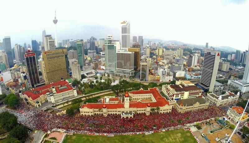 Peserta yang berkumpul di lokasi yang dikenalpasti telah berarak ke Dataran Merdeka sehingga menyebabkan kesesakan lalu lintas.